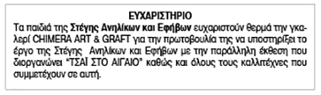 Ευχαριστήριο από την Στέγη Ανηλίκων και Εφήβων Σύρου Κείμενο Βλέπε εικόνα. Αριθμός Φύλλου: 5721 Κατηγορία: Ευχαριστήριο