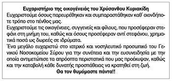 Ευχαριστήριο για Χρύσανθο Κυριακίδη Κείμενο Βλέπε εικόνα. Αριθμός Φύλλου: 5728 Κατηγορία: Ευχαριστήριο