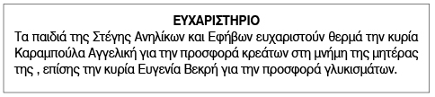 Ευχαριστήριο από τη Στέγη Ανηλίκων και Εφήβων Σύρου Κείμενο Βλέπε εικόνα. Αριθμός Φύλλου: 5736 Κατηγορία: Ευχαριστήριο