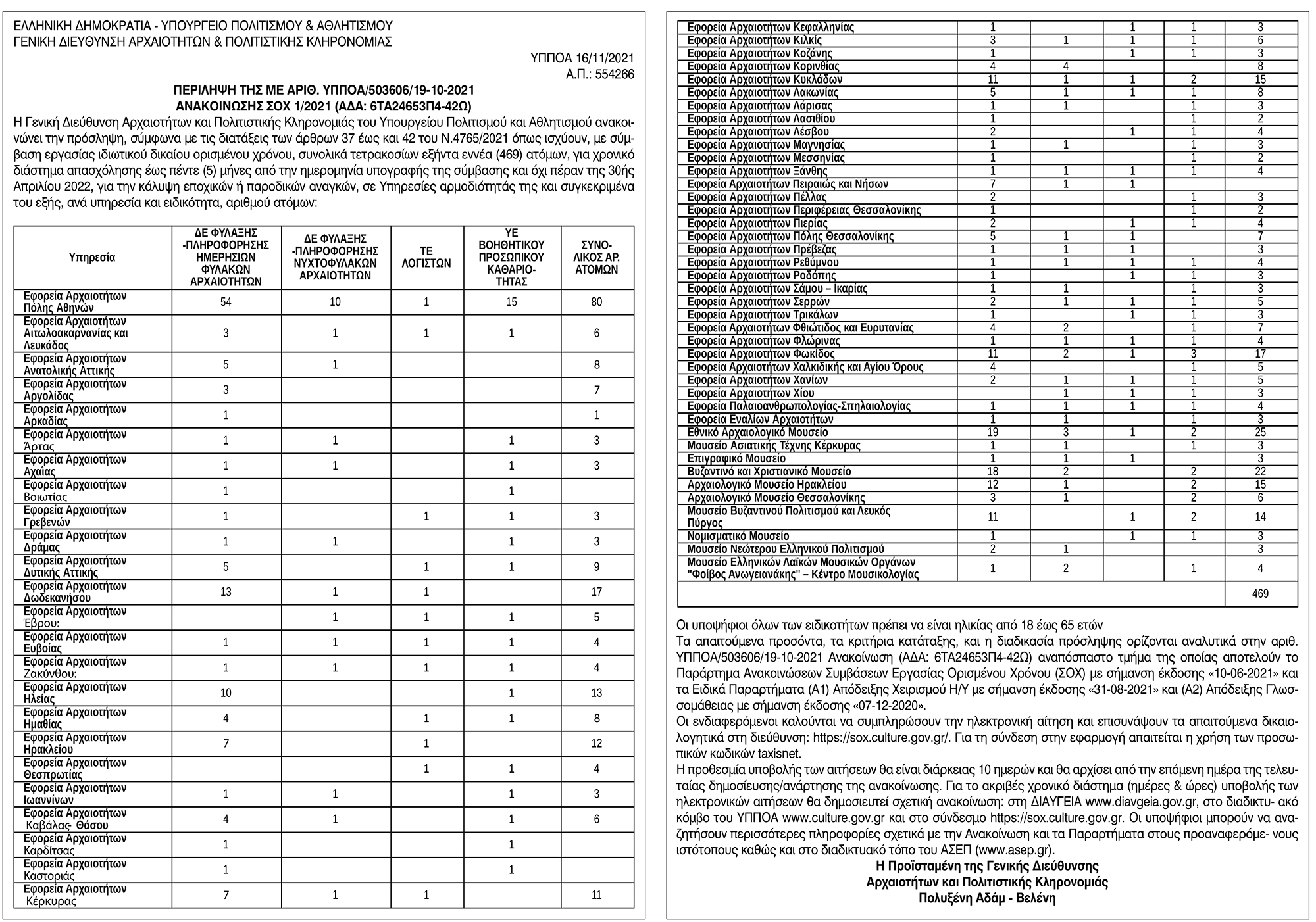 Ελληνική Δημοκρατία - Υπουργείο Πολιτισμού & Αθλητισμού Γενική Διεύθυνση Αρχαιοτήτων & Πολιτιστικής κληρονομιάς ΣΟΧ 1/2021 Κείμενο Βλέπε εικόνα. Αριθμός Φύλλου: 5758 Κατηγορία: Προκήρυξη Θέσεων