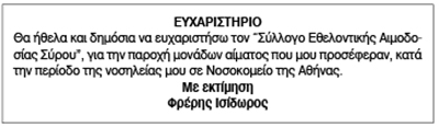 Ευχαριστήριο Φρέρη Ισίδωρου