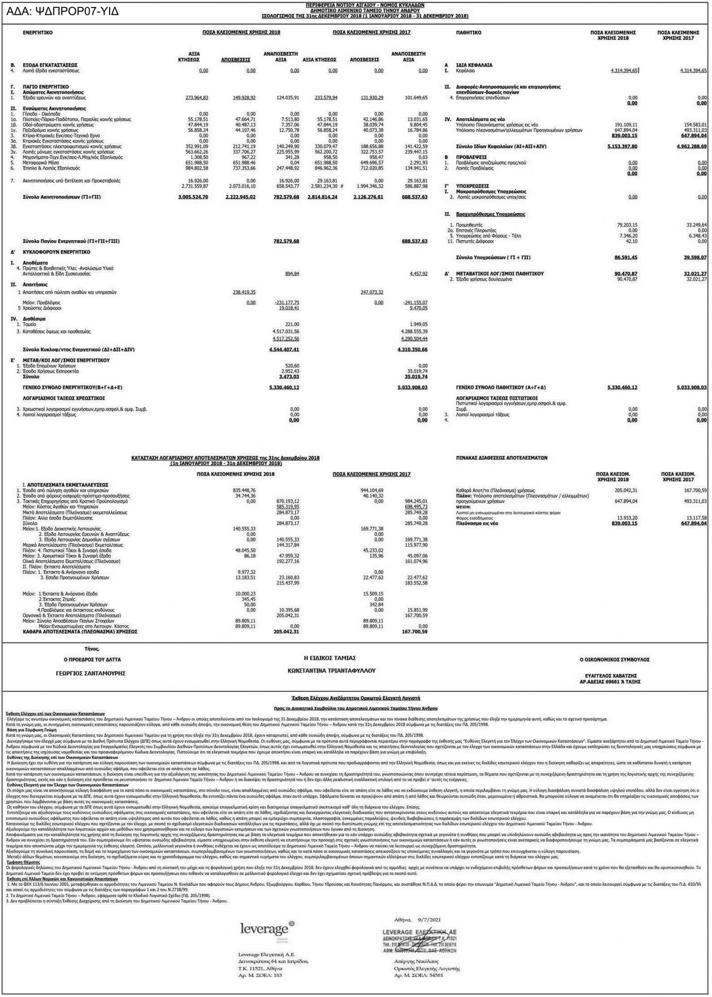 Ισολογισμός 2018 από το Δημοτικό Λιμενικό Ταμείο Τήνου - Άνδρου Κείμενο Βλέπε εικόνα. Αριθμός Φύλλου: Αριθμός Φύλλου 5639 Κατηγορία: Κατηγορία Ισολογισμοί