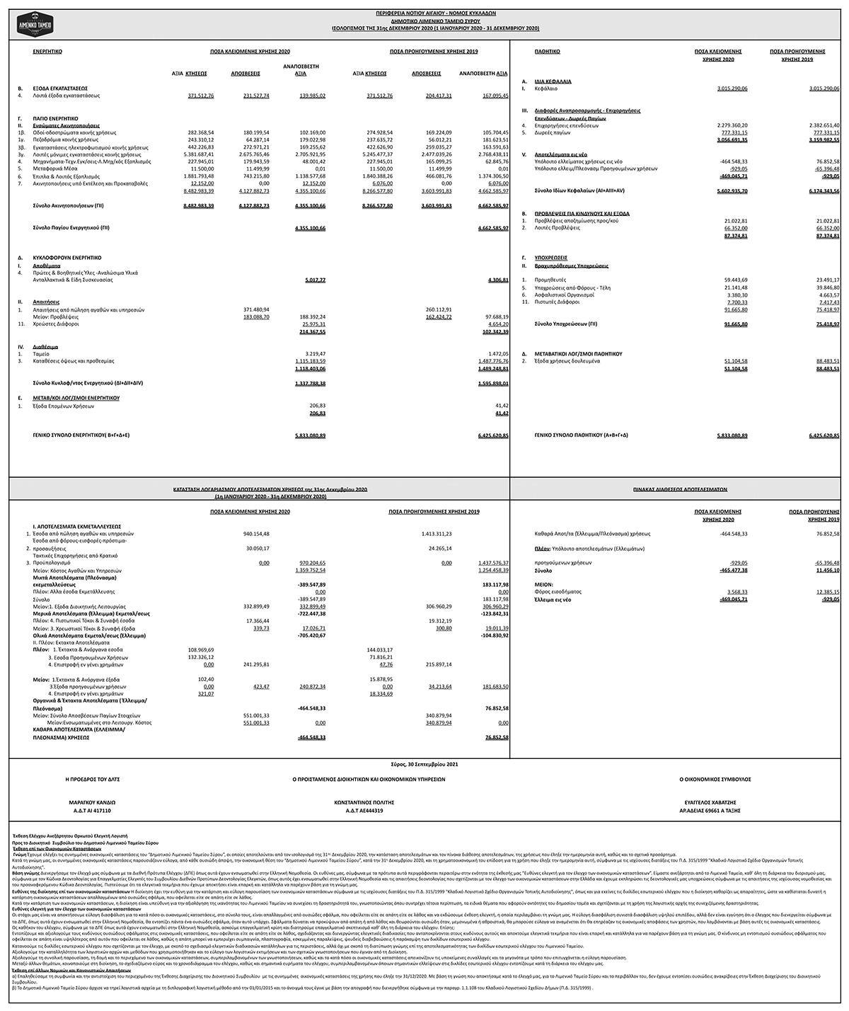 Ισολογισμός 2020 από το Δημοτικό Λιμενικό Ταμείο Σύρου Κείμενο Βλέπε εικόνα. Αριθμός Φύλλου: Αριθμός Φύλλου 5832 Κατηγορία: Κατηγορία Ισολογισμοί