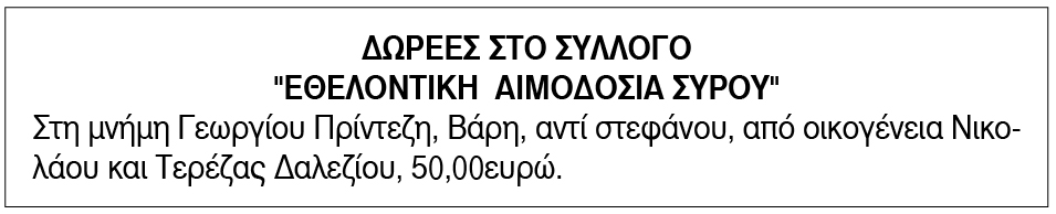 Δωρεές στην Εθελοντική Αιμοδοσία Σύρου