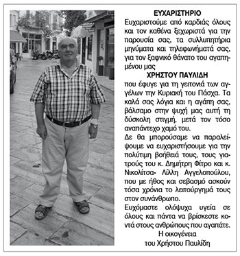 Ευχαριστήριο για Χρήστο Παυλίδη