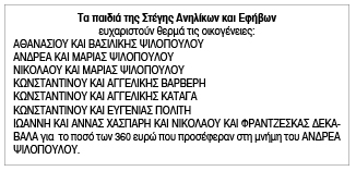 Ευχαριστήριο από τη Στέγη Ανηλίκων Σύρου Κείμενο Βλέπε εικόνα. Αριθμός Φύλλου: 5932 Κατηγορία: Δωρεές