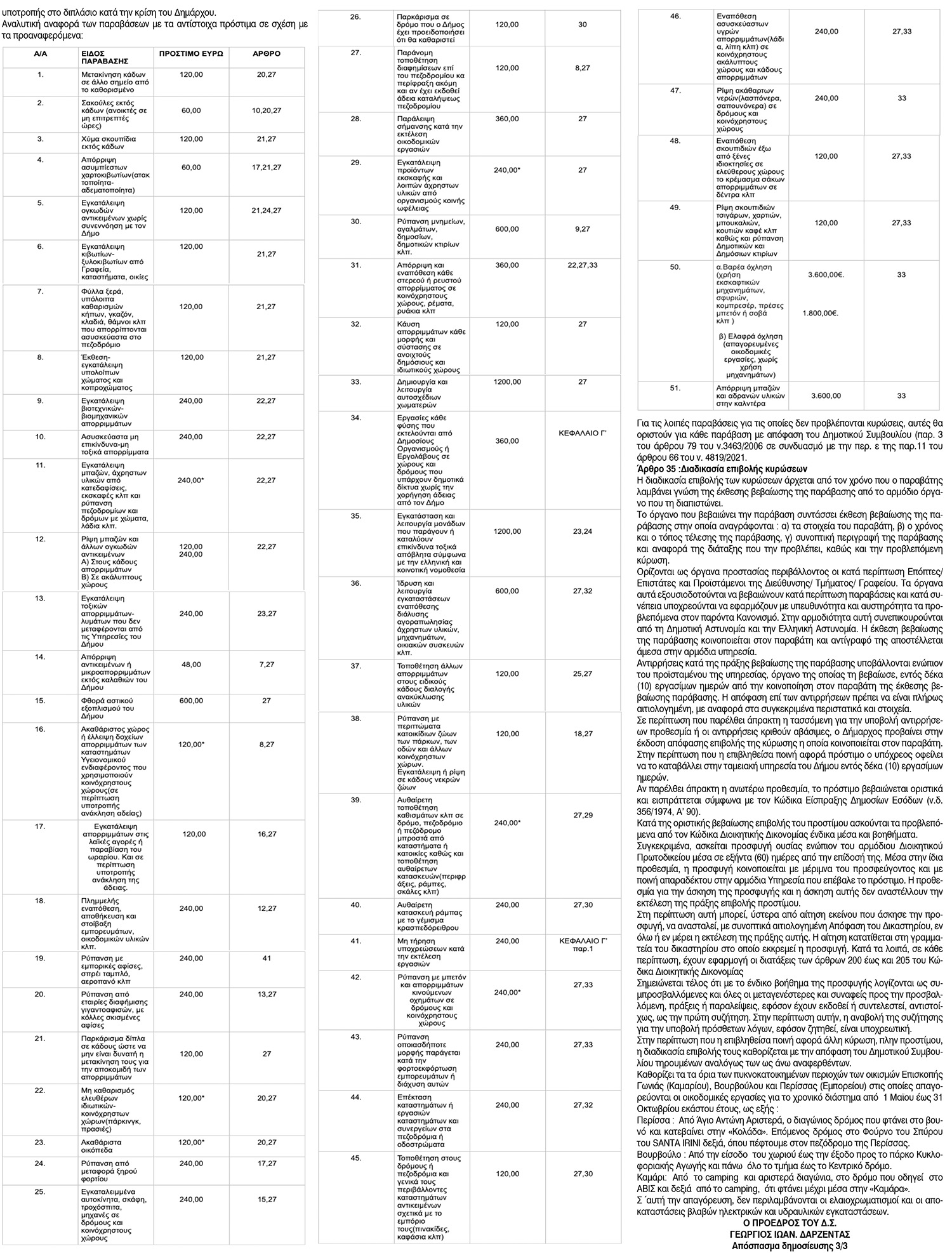 Αρμόδιο όργανο για την επιβολή της προβλεπόμενης για κάθε παράβαση κύρωσης είναι ο δήμαρχος, σύμφωνα με το εδάφιο γ) της παρ.11 του άρθρου 66 του ν. 4819/2021.