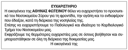 Ευχαριστήριο για Αθηνά Φωτεινού