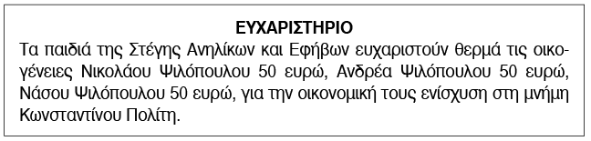 Ευχαριστήριο για Δωρεές από τη Στέγη Ανηλίκων Σύρου Κείμενο Βλέπε εικόνα. Αριθμός Φύλλου: 6017 Κατηγορία: Δωρεές