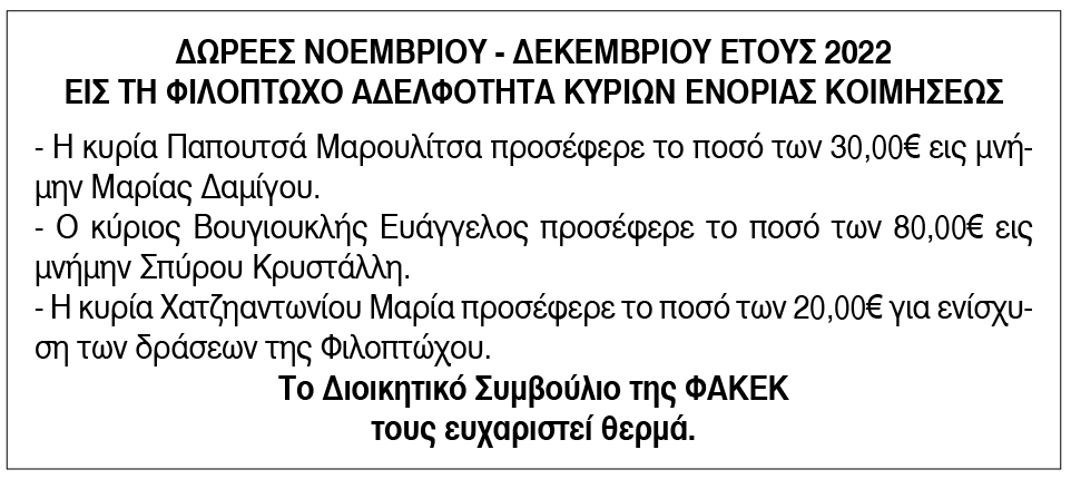 Φιλόπτωχος Αδελφότητα Κυριών Ενορίας Κοιμήσεως, Δωρεές Κείμενο Βλέπε εικόνα. Αριθμός Φύλλου: 6039 Κατηγορία: Δωρεές