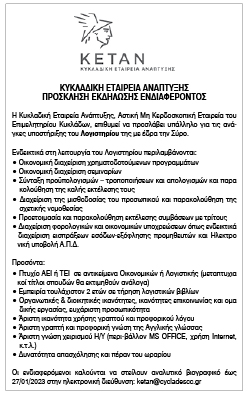 Κυκλαδική Εταιρεία Ανάπτυξης, Αστική Μη Κερδοσκοπική Εταιρεία του Επιμελητηρίου Κυκλάδων, για πρόσληψη υπάλληλου για τις ανάγκες υποστήριξης του Λογιστηρίου της με έδρα την Σύρο.