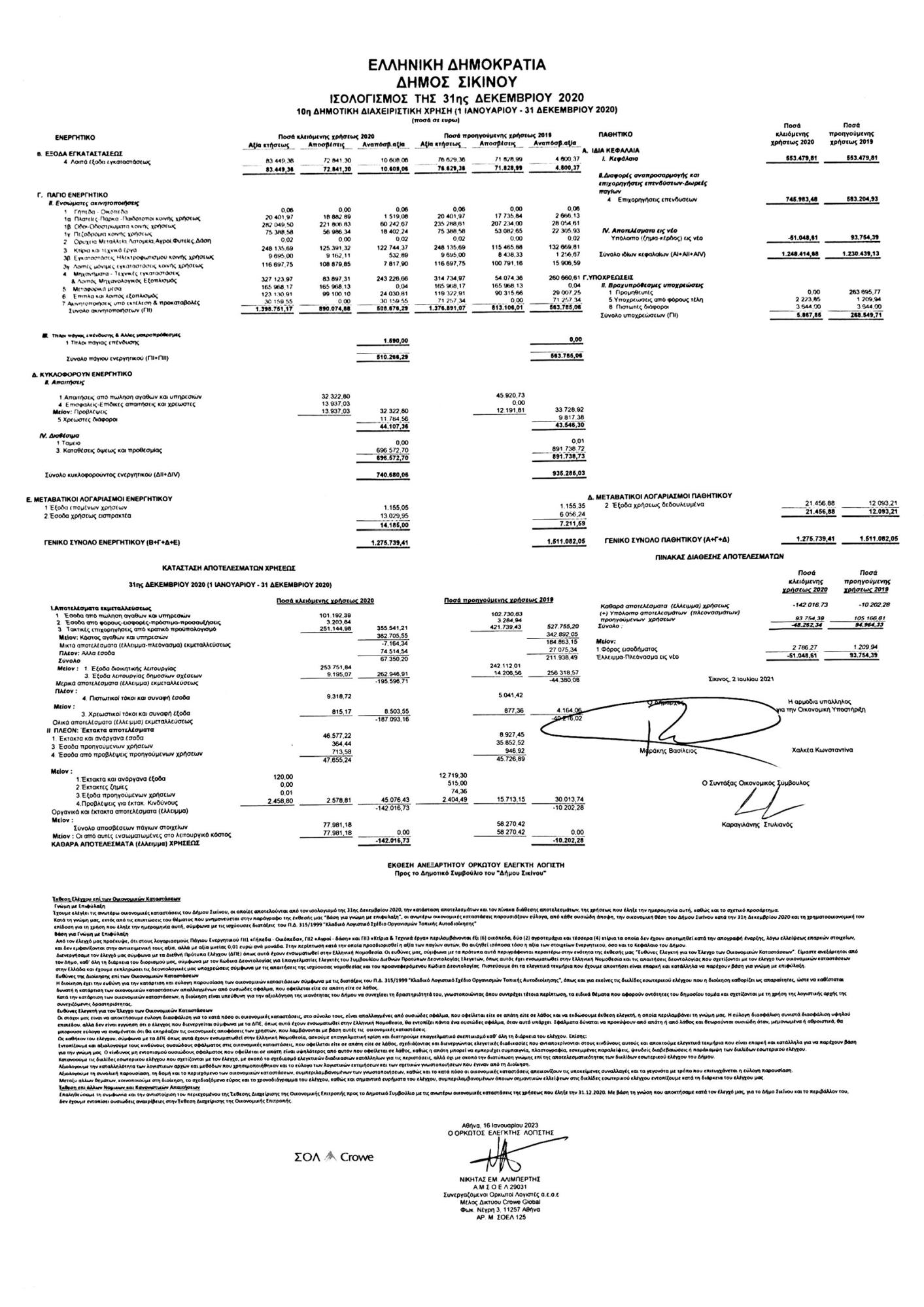 Ισολογισμός της 31ης Δεκεμβρίου 2020, από το Δήμο Σικίνου Κείμενο Βλέπε εικόνα. Αριθμός Φύλλου: Αριθμός Φύλλου 6088 Κατηγορία: Κατηγορία Ισολογισμοί