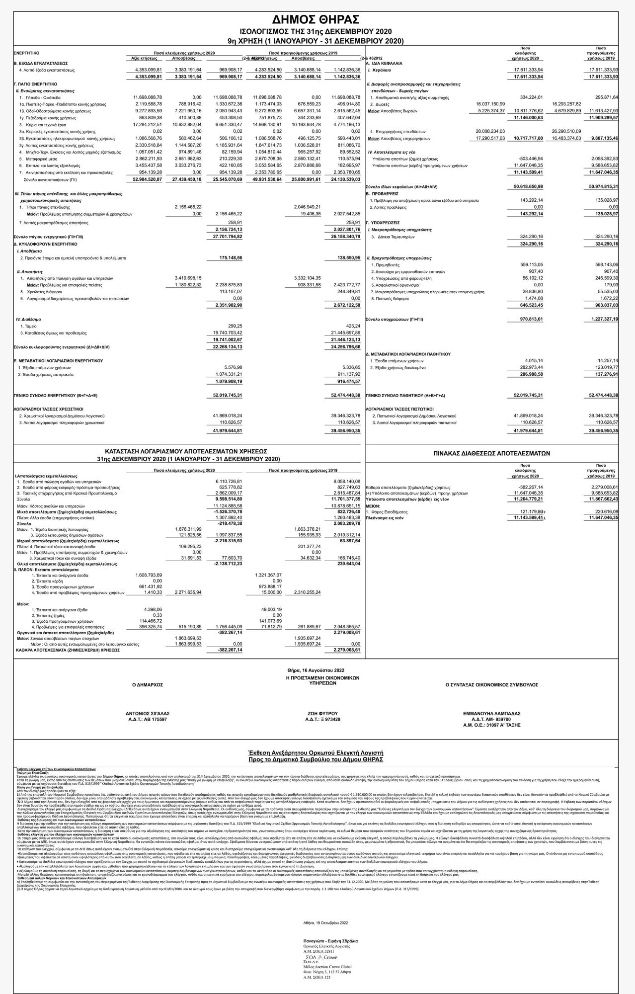 Ισολογισμός της 31ης Δεκεμβρίου 2020, από το Δήμο Θήρας Κείμενο Βλέπε εικόνα. Αριθμός Φύλλου: Αριθμός Φύλλου 6104 Κατηγορία: Κατηγορία Ισολογισμοί