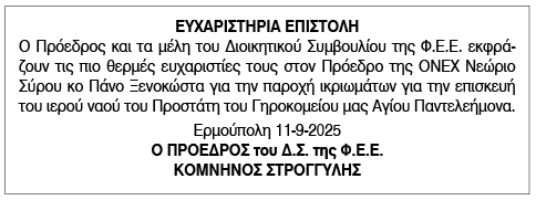 Ευχαριστήρια επιστολή από Φ.Ε.Ε. Γηροκομείο Αγ. Παντελεήμονα προς την ONEX Κείμενο Βλέπε εικόνα. Αριθμός Φύλλου: Αριθμός Φύλλου 6684 Κατηγορία: Κατηγορία Ευχαριστήριο