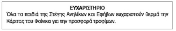 Ευχαριστήριο για Δωρεές από τη Στέγη Ανηλίκων και Εφήβων Σύρου Κείμενο Βλέπε εικόνα. Αριθμός Φύλλου: Αριθμός Φύλλου 6693 Κατηγορία: Κατηγορία Δωρεές