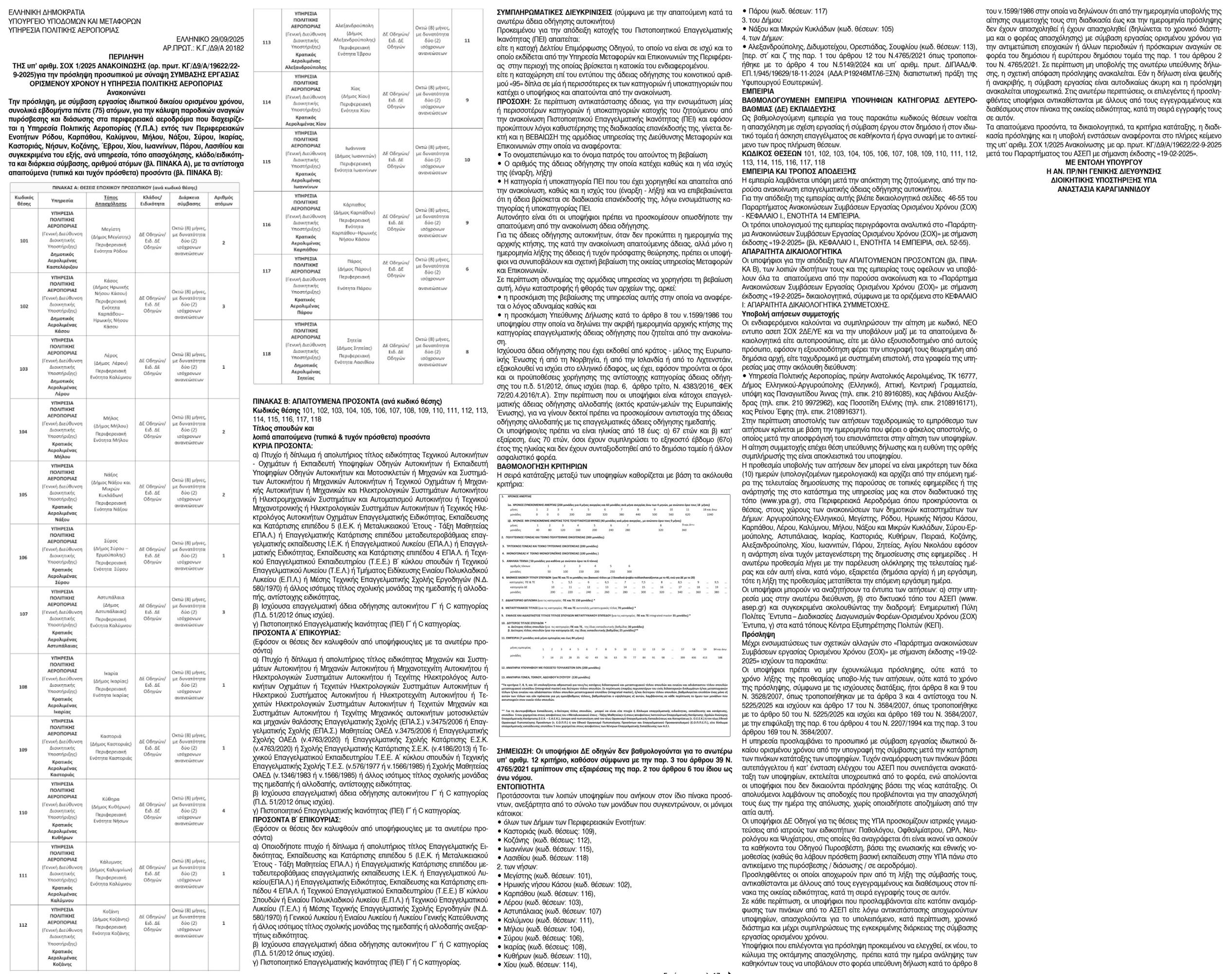 Περίληψη της υπ' αριθμ. ΣΟΧ 1/2025, από την Υπηρεσία Πολιτικής Αεροπορίας Κείμενο Βλέπε εικόνα. Αριθμός Φύλλου: Αριθμός Φύλλου 6698 Κατηγορία: Κατηγορία Προκήρυξη Θέσεων