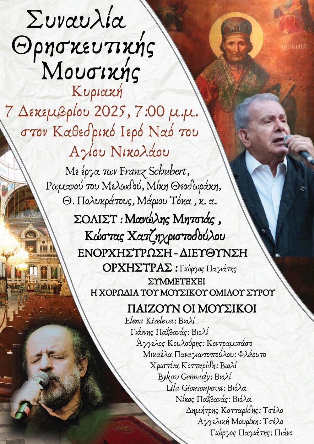 Συναυλία Θρησκευτικής Μουσικής Από την Ιερά Μητρόπολη Σύρου Κείμενο Βλέπε εικόνα. Αριθμός Φύλλου: Αριθμός Φύλλου 6742 Κατηγορία: Κατηγορία Ανακοίνωση
