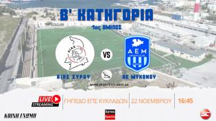 Παρακολουθήστε σε ζωντανή μετάδοση από το γήπεδο της ΕΠΣ Κυκλάδων στην Ερμούπολη τον αγώνα της 5ης αγωνιστικής του 1ου ομίλου της Β' κατηγορίας της ΕΠ...