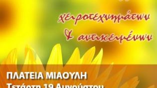 Παζάρι χειροποίητων κατασκευών και χειροτεχνημάτων θα πραγματοποιηθεί στην Πλατεία Μιαούλη την Τετάρτη 19 Αυγούστου και ώρες 19:00 – 22:00, από τον Σύ...