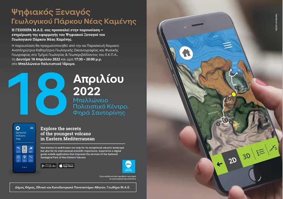 Στην παρουσίαση του νέου ψηφιακού ξεναγού, της νέας ιστοσελίδας και του νέου πληροφοριακού φυλλαδίου, για το γεωλογικό πάρκο της Νέας Καμένης, προχώρη...
