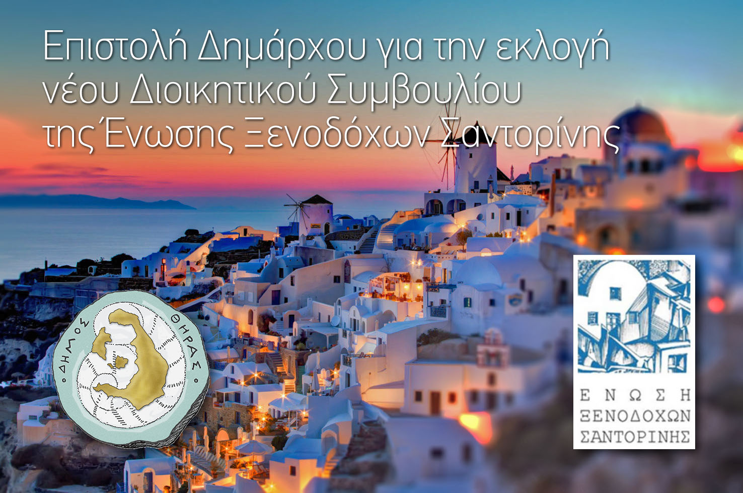 Εκφράζω τα θερμά μου συγχαρητήρια προς το νεοεκλεγέν Διοικητικό Συμβούλιο της Ένωσης Ξενοδόχων Σαντορίνης. Οι ξενοδόχοι της Σαντορίνης επιβράβευσ...