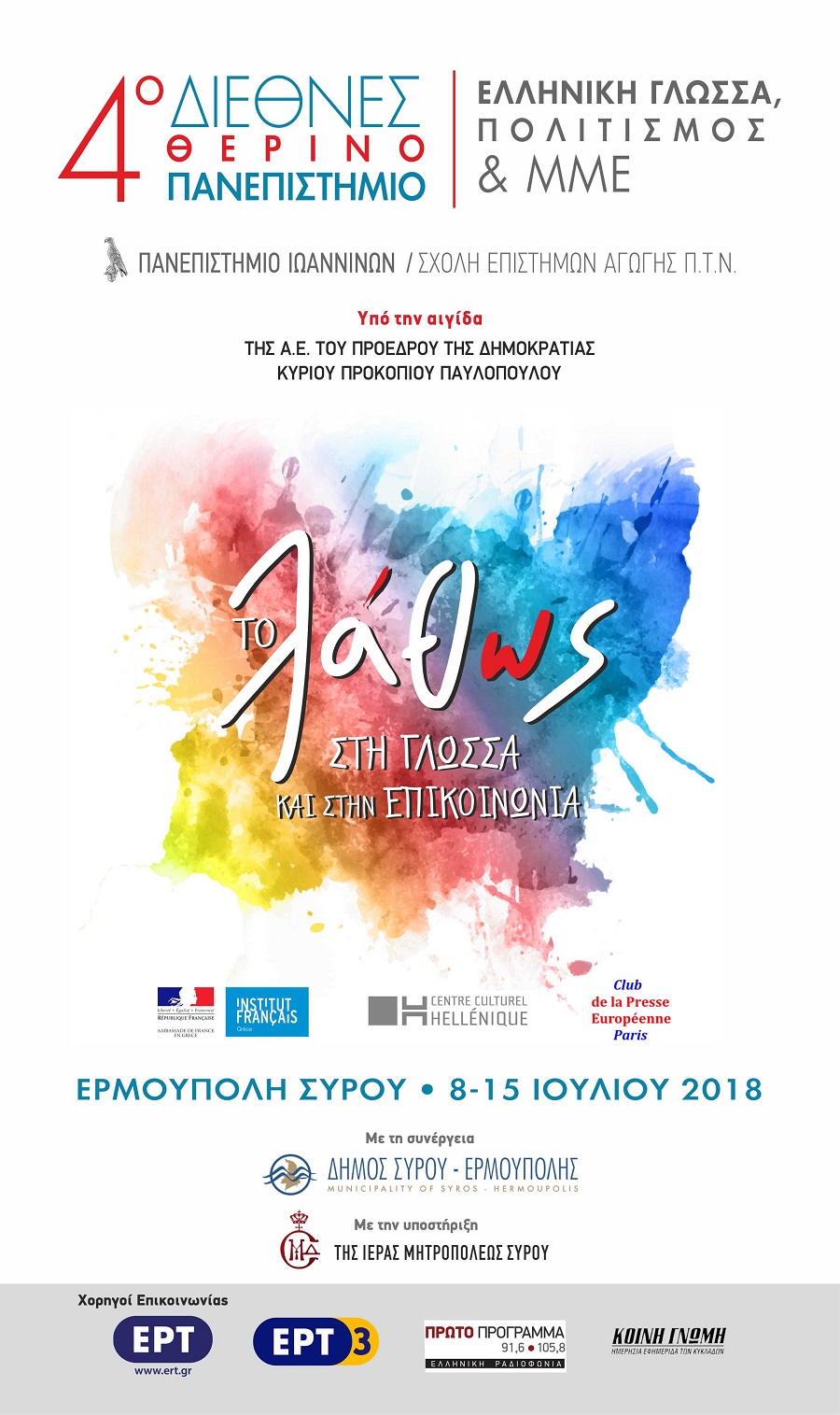 Από την Οργανωτική Επιτροπή του 4ου Διεθνούς Θερινού Πανεπιστημίου «Ελληνική Γλώσσα, Πολιτισμός και Μέσα Μαζικής Επικοινωνίας» ανακοινώθηκε ότι οι αιτ...
