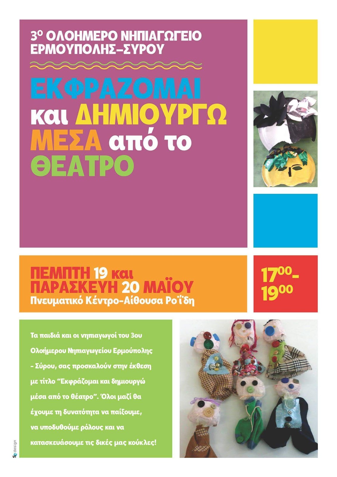 Τα παιδιά και οι νηπιαγωγοί του 3ου Ολοήμερου Νηπιαγωγείου Ερμούπολης – Σύρου παρουσιάζουν την έκθεση με τίτλο "Εκφράζομαι και δημιουργώ μέσα από το θ...