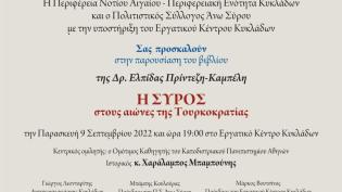 Παρουσίαση του βιβλίου «Η Σύρος στους αιώνες της Τουρκοκρατίας»