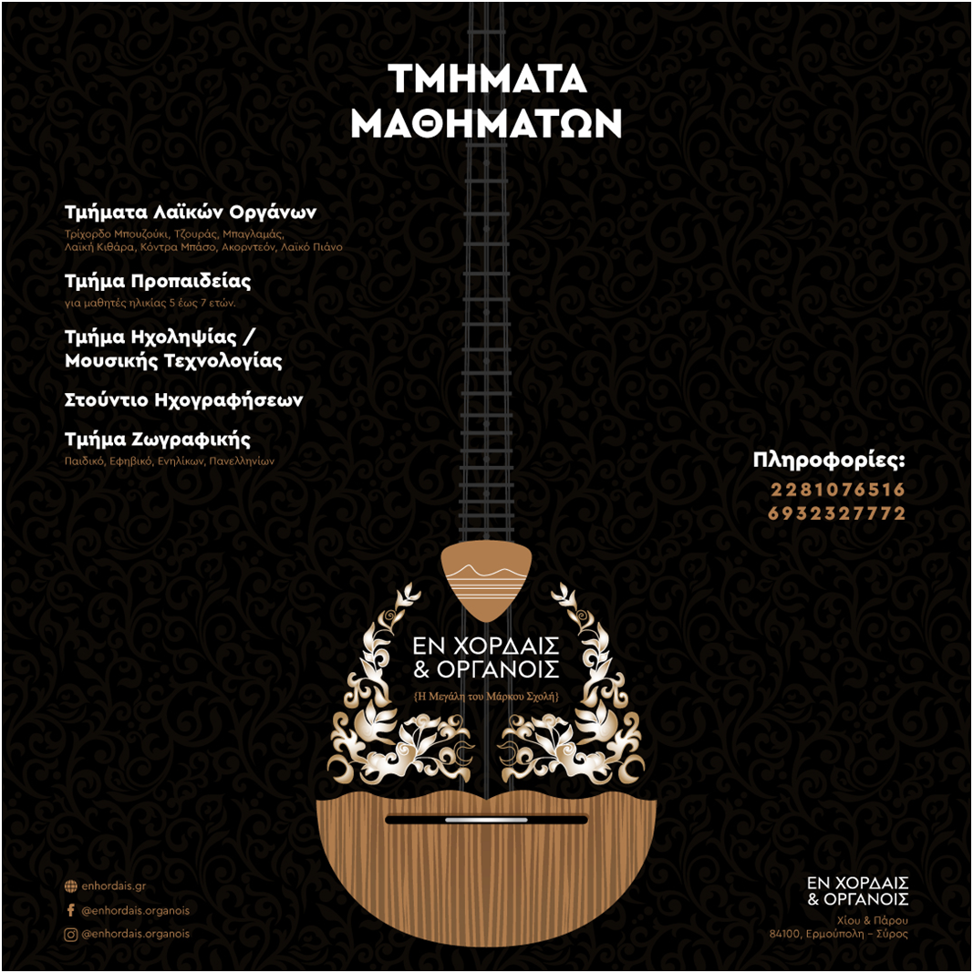 Το μη κερδοσκοπικό σωματείο «Εν Χορδαίς & Οργάνοις» (Η Μεγάλη του Μάρκου Σχολή), σας προσκαλεί στην όμορφη Σύρο, όπου διοργανώνει καλοκαιρινά εργαστήρ...