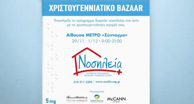 Με στόχο τη συνέχιση του έργου μας, σας προσκαλούμε στο χριστουγεννιάτικο φιλανθρωπικό Βazaar που διοργανώνουμε στην Αίθουσα ΜΕΤΡΟ «Σύνταγμα». Από ...