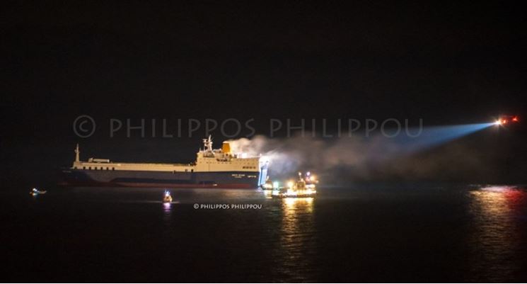 Πρόκειται για φορτηγό-οχηματαγωγό- Στο σημείο έσπευσαν super Puma, σκάφη του Λιμενικού και τέσσερα παραπλέοντα πλοία - Υπό έλεγχο η φωτιά Σε εγκατά...