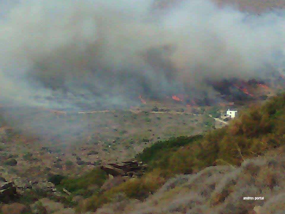 Απειλητική, για έναν ολόκληρο οικισμό, φωτιά ξέσπασε από τις μεσημβρινές ώρες χθες στην Άνδρο, σε δασική έκταση της περιοχής του Αγίου Ανδρέα, πλησιάζ...