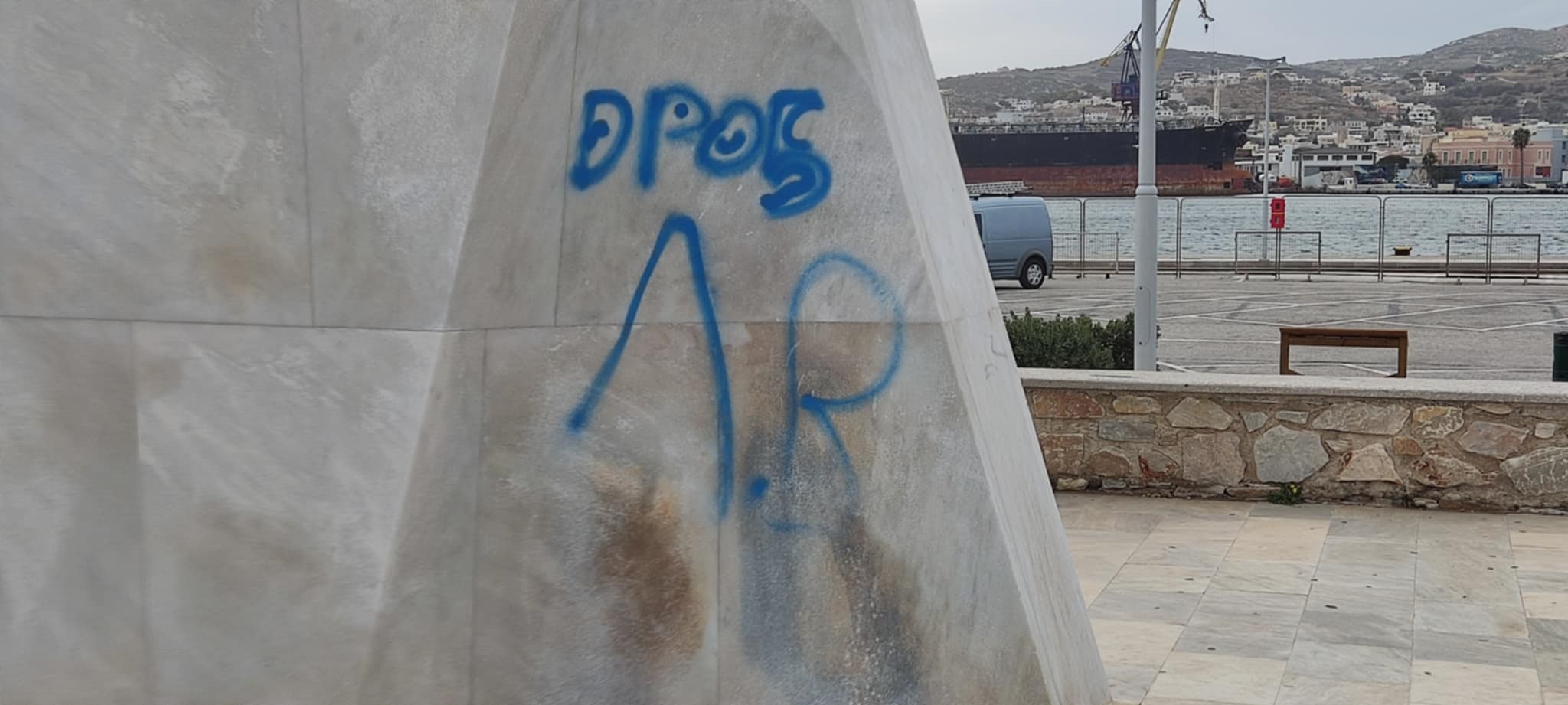 “Φρέσκα” γκράφιτι στο μνημείο Εμπορικής Ναυτιλίας