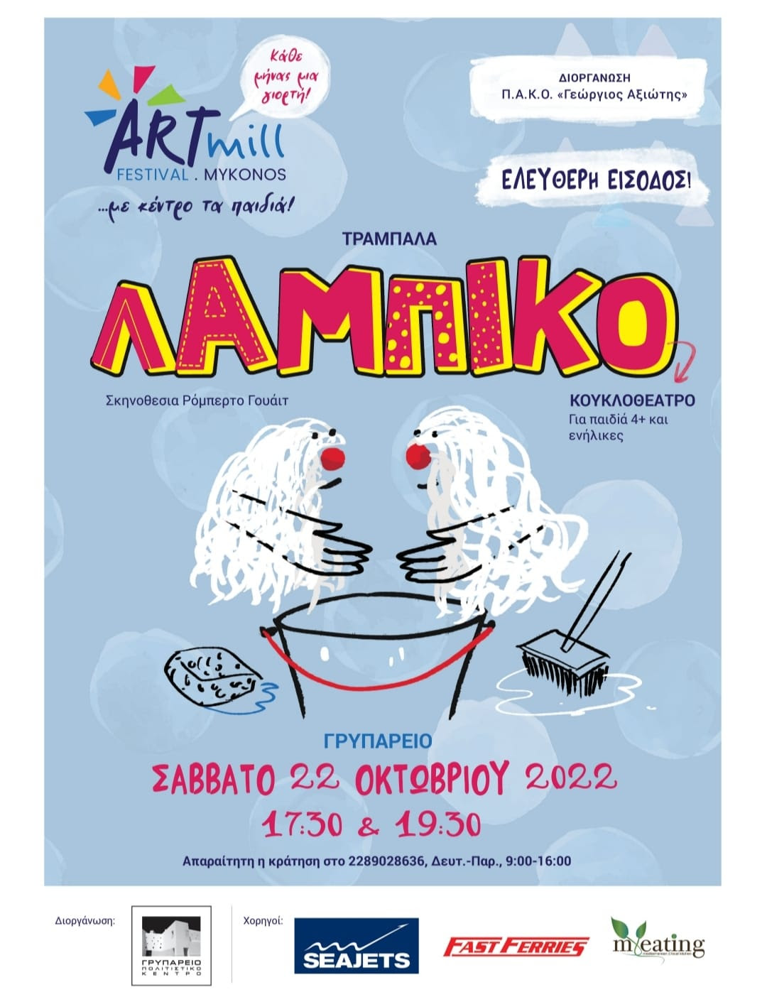Το Σάββατο 22 Οκτωβρίου στις 17:30 και 19:30 στο Γρυπαρειο, η ομάδα κουκλοθεάτρου Τραμπάλα παρουσιάζει για 2 παραστάσεις το έργο «Λαμπίκο» σε σκηνοθεσ...