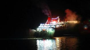 Τιμές απέδωσε το πλοίο Νήσος Μύκονος της Hellenic Seaways με τους Τηνιακούς Καπετάνιους, Ευάγγελο Αράθυμο και Μάριο Πελέκη, παραμονή της Εορτής Κοιμή...