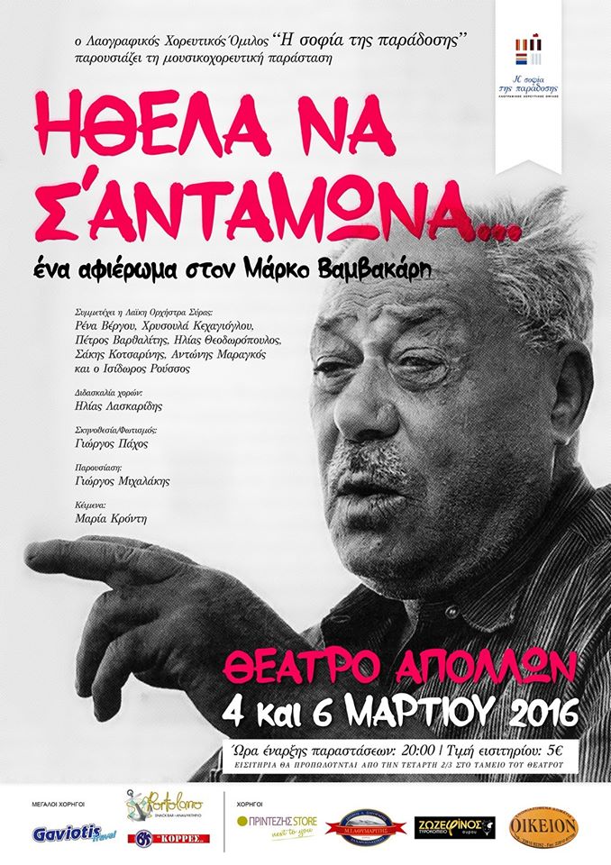 Ο Λαογραφικός Χορευτικός Όμιλος "Η Σοφία της Παράδοσης" παρουσιάζει την Παρασκευή 4 και την Κυριακή 6 Μαρτίου και ώρα 20:00 στο Θέατρο “Απόλλων” τη μο...