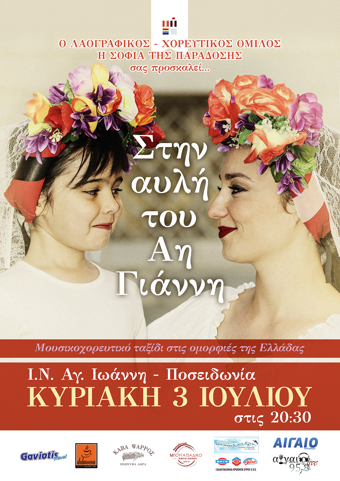 Ο Λαογραφικός – Χορευτικός Όμιλος «η σοφία της παράδοσης» σας προσκαλεί σε ένα μουσικοχορευτικό ταξίδι στις ομορφιές της Ελλάδας «Στην αυλή του Αη Γιά...