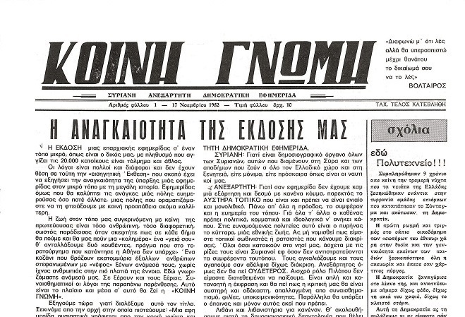 Γενέθλιο έτος 1982, με το ημερολόγιο να δείχνει 17 Νοεμβρίου. 35 χρόνια πριν έγινε η πρώτη έκδοση της «Κοινής Γνώμης», με μία πορεία που σημειώνετα...
