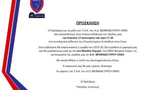 Μέσα σε κλίμα αισιοδοξίας και ενθουσιασμού πραγματοποιήθηκε η εορταστική εκδήλωση του Φοίνικα Σύρου – ONEX. Στην εκδήλωση έδωσαν το παρών οι τοπικοί ά...