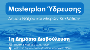 Ο Δήμος Νάξου και Μικρών Κυκλάδων εκπονεί Γενικό Σχέδιο Ύδρευσης (master plan Ύδρευσης) για τη Νήσο Νάξο και τις Μικρές Κυκλάδες, με την τεχνική υποστ...