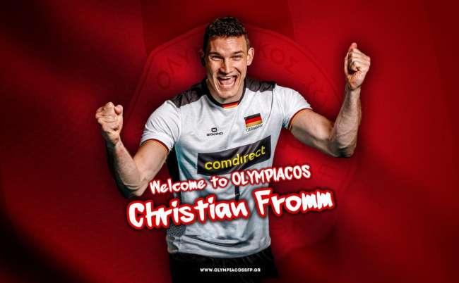 Ο Ολυμπιακός ανακοίνωσε την έναρξη της συνεργασίας του με τον Κρίστιαν Φρομ. Ο διεθνής Γερμανός ακραίος (ημ. Γέννησης 15/08/1990), ύψους 2.04μ. υπέ...