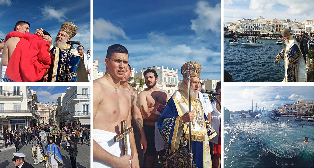 Κάτω από τον ηλιόλουστο ουρανό της πρωτεύουσας των Κυκλάδων και με τη συμμετοχή πλήθους πιστών, τελέστηκε το Σάββατο ο εορτασμός των Θεοφανείων στη Σύ...