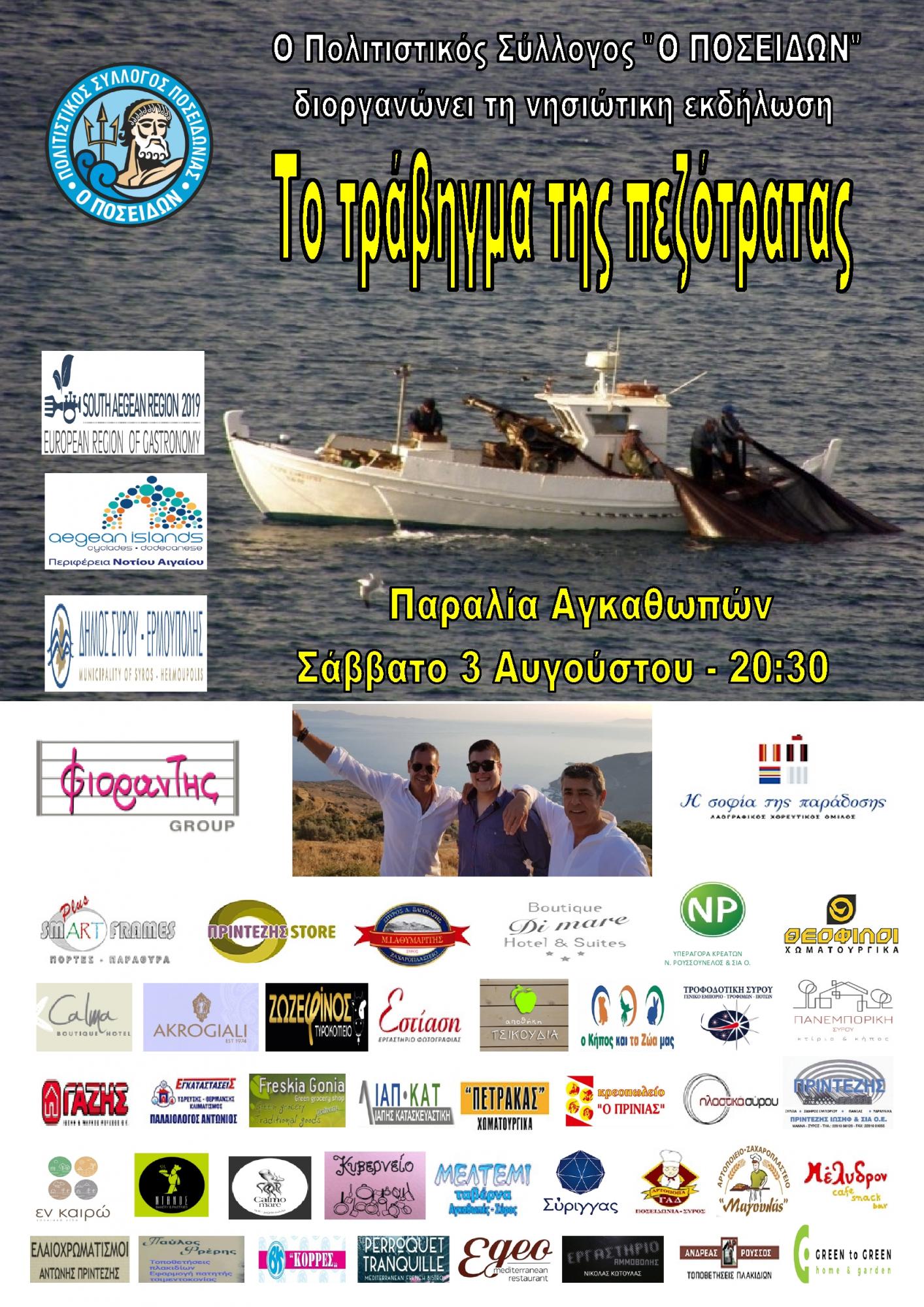 Ο Πολιτιστικός Σύλλογος “Ο Ποσειδών”, η Περιφέρεια Νοτίου Αιγαίου και ο Δήμος Σύρου-Ερμούπολης, συνδιοργανώνουν τη νησιώτικη εκδήλωση “Το τράβηγμα της...