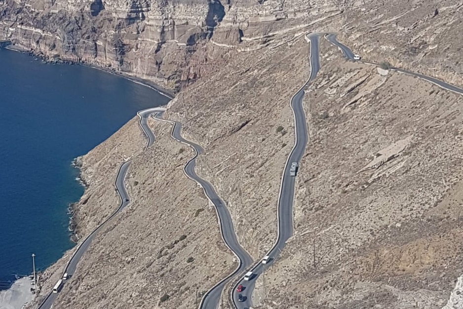 Το οδικό δίκτυο της Σαντορίνης σε πρώτο πλάνο