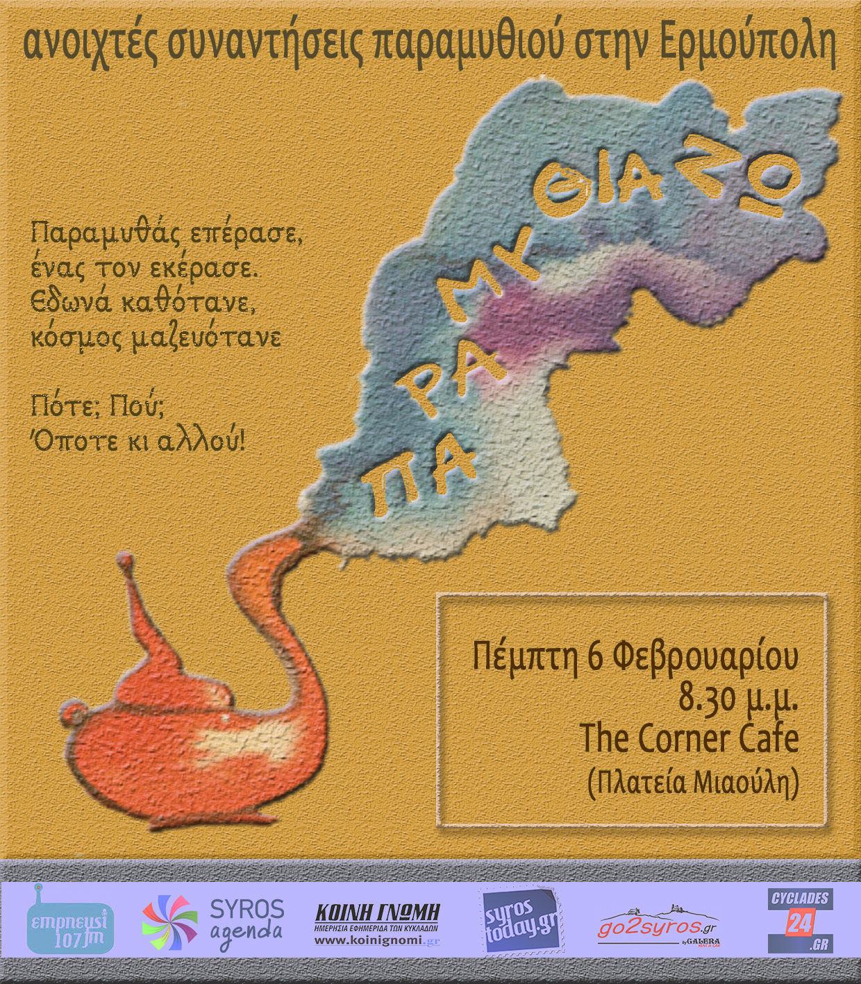 Αυτόν τον χειμώνα, η ομάδα αφηγητών ΠαραμυθιαΖΩ, μια στο τόσο, κάνουν βόλτα στην Ερμούπολη, σταματούν κάπου κι αρχίζουν τις ιστορίες… Οι συναντήσεις τ...