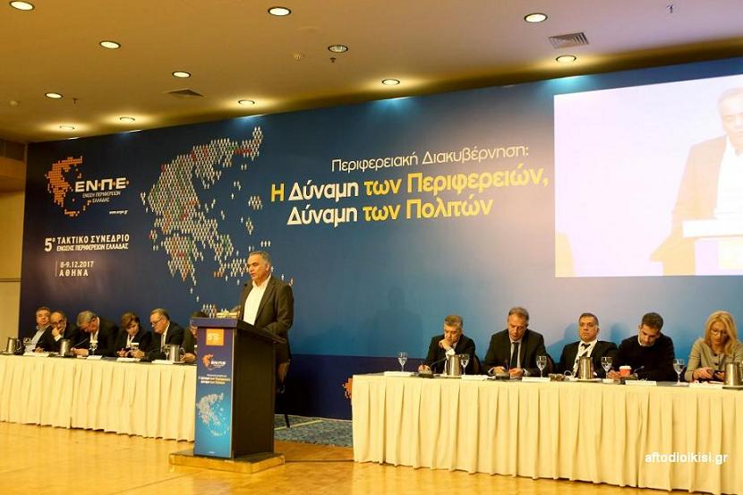 Από το βήμα του κοινού συνεδρίου της Κεντρικής Ένωσης Δήμων και της Ένωσης Περιφερειών Ελλάδος, ανακοίνωσε ο υπουργός Εσωτερικών τη μετάθεση των αυτοδ...