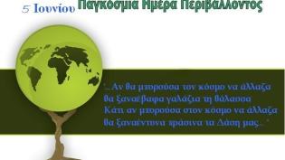 Παγκόσμια Ημέρα Περιβάλλοντος η σημερινή, μέρα που δεν αντιστοιχεί όμως σε γιορτές και πανηγυρισμούς αλλά σε βαθύτερες σκέψεις και προβληματισμό. Όσο ...
