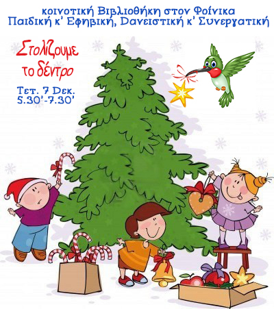 Στολίζουμε το χριστουγεννιάτικο δέντρο στη Βιβλιοθήκη στον Φοίνικα | Παιδική & Εφηβική | Συνεργατική & Δανειστική Το κολιμπρί ζητάει βοήθει...