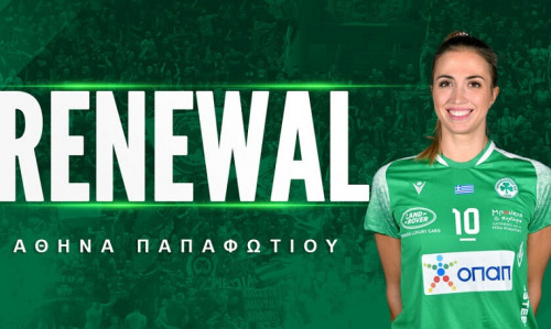 Τα πράσινα για τρίτη συνεχή χρονιά θα φορά η Αθηνά Παπαφωτίου. Η 33χρονη (1,81μ) διεθνής πασαδόρος συμφώνησε με τη διοίκηση του Παναθηναϊκού να παραμε...