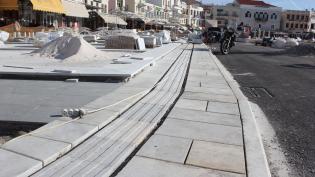 Εργασίες βελτίωσης των πλακών και των ραμπών που εξυπηρετούν τα άτομα με κινητικά προβλήματα και προβλήματα όρασης πλησίον της πλατείας Κανάρη